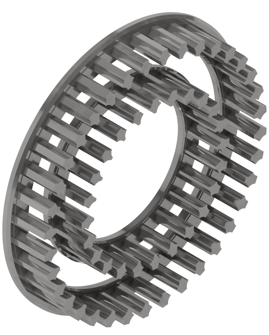 Ein oder zwei Ringe, die mit quaderförmigen Nasen besetzt sind, bilden ein feststehendes Mahlelement. Die Mahlringe werden an der Gehäusetür verschraubt. Sie sind das Gegenelement zu den Schlagnasen des Schlagnasenrotors.
