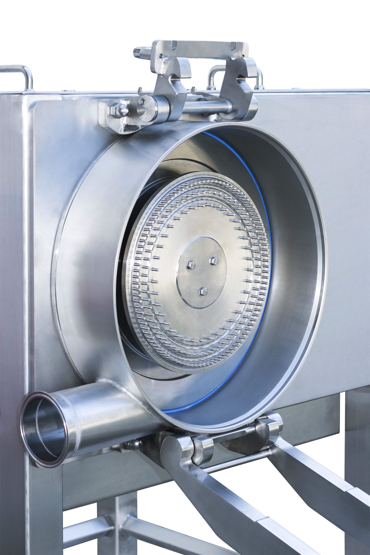 Die Installation der Nebenaggregate erfolgte außerhalb des Reinraums im darunterliegenden Technikraum. Der Förderstrom des Kreisgassystems wird über Sicherheitsfilter zwischen Reinraum und Technikraum getrennt. Das geschlossene Kreisgassystem wird vor dem Mahlbetrieb mit Stickstoff gefüllt, um die sichere Vermahlung explosionsgefährdeter Stoffe zu realisieren. Der im Kreisgassystem integrierte Gaskühler sorgt für die nötige Kühlung und Entfeuchtung der Förderluft.