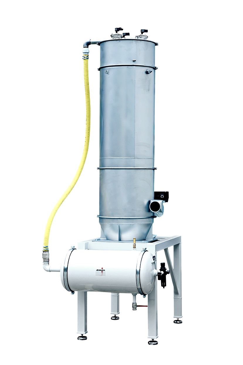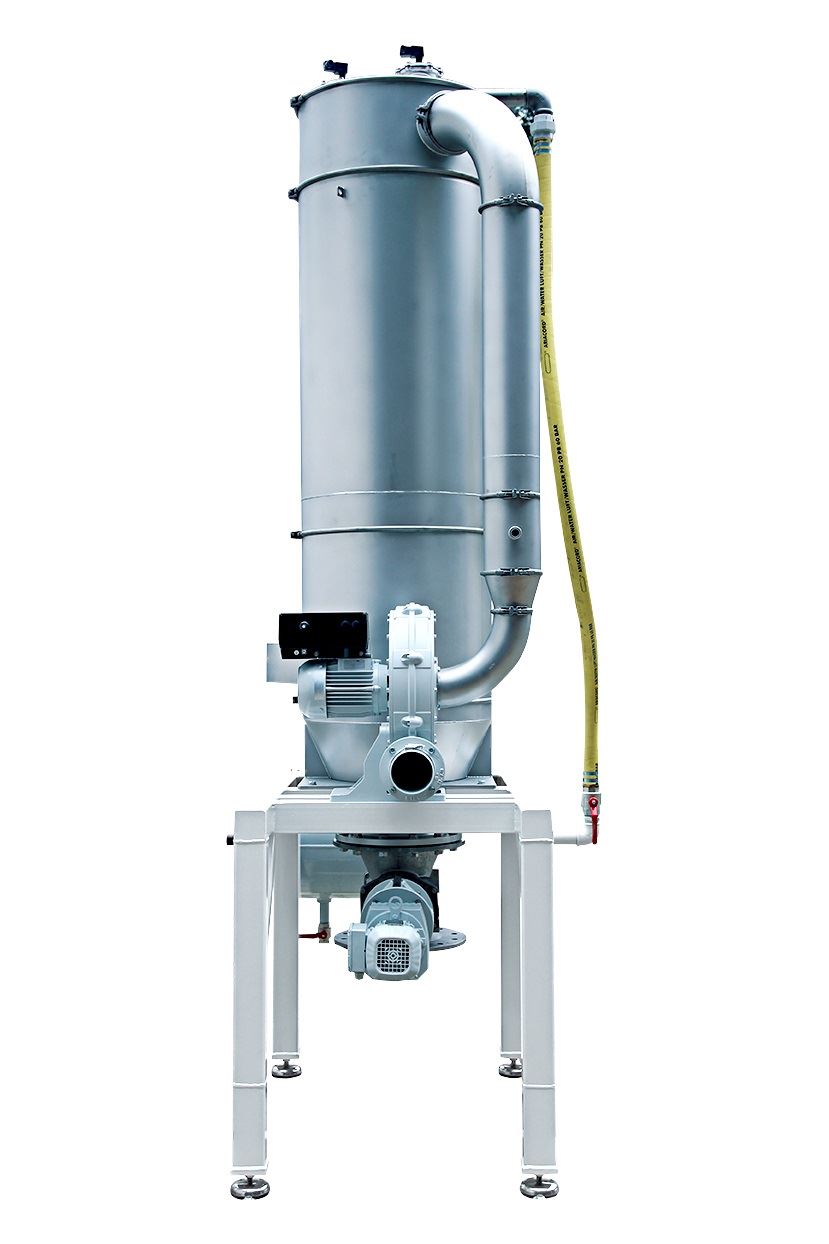 Ein Filter-Abscheider mit effizienter Pulse-JET-Druckluftabreinigung dient der Entstaubung des pneumatischen Förderstroms.