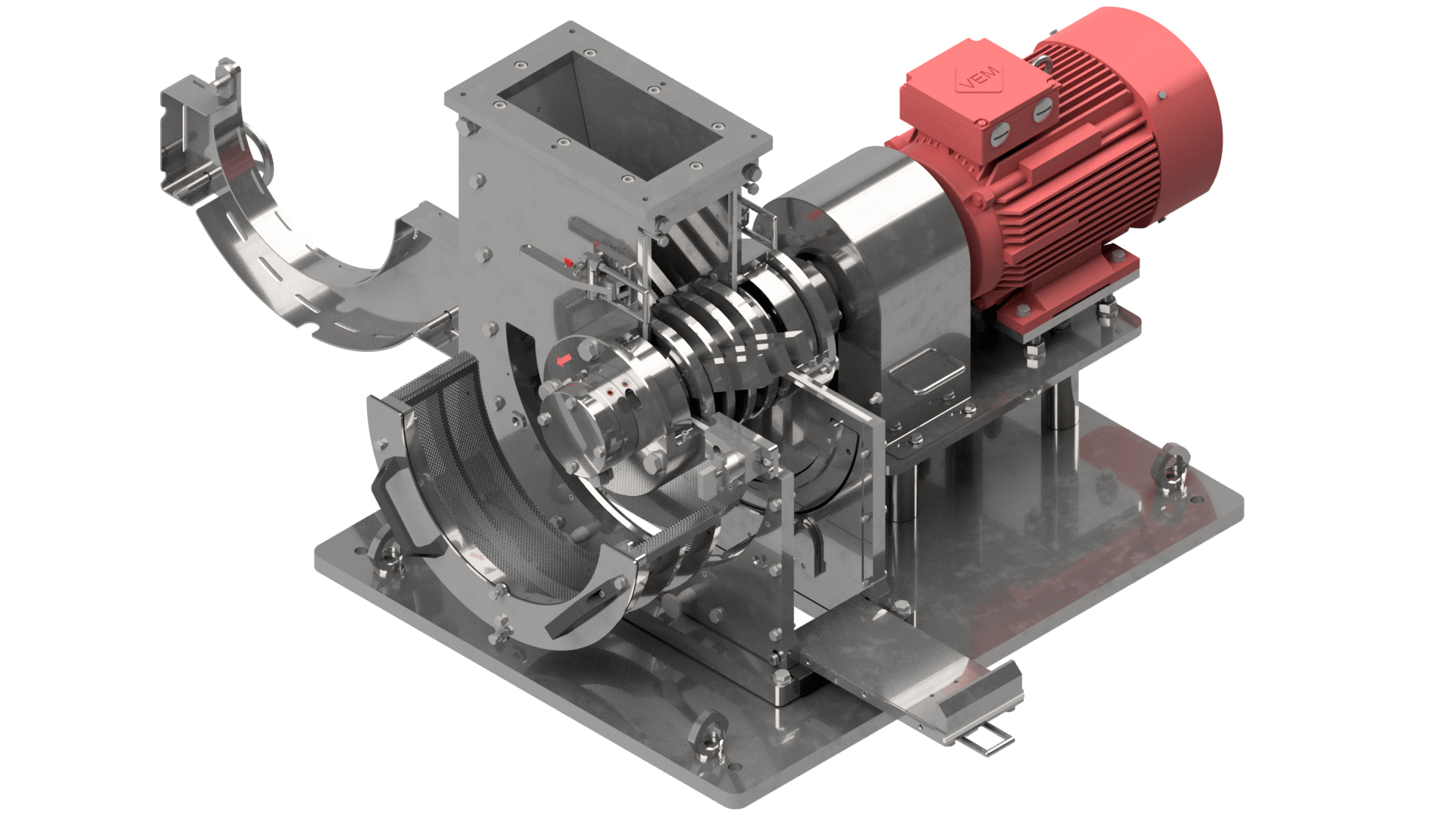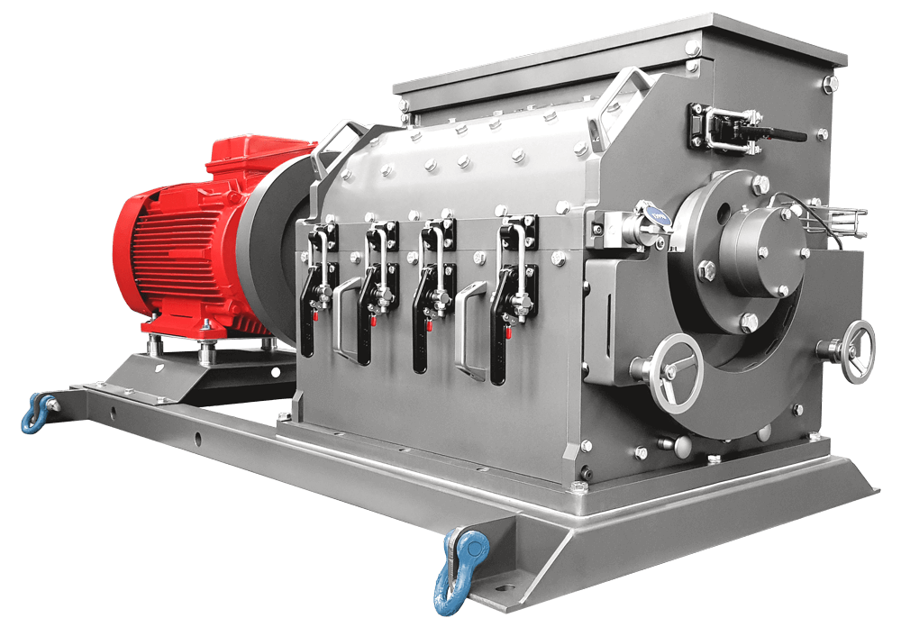Je nach Produkteigenschaften und gewünschtem Zerkleinerungsergebnis können die Aggregate einfach seitlich mit unterschiedlichen Siebeinsätzen bestückt werden. Dabei stehen verschiedene Loch- und Stabsiebroste zur Verfügung. Die Gehäusefront ist mit einer komfortablen Entriegelung versehen, die den Zugang zur Hammerwelle zu Revisionszwecken ohne Spezialwerkzeug zügig ermöglicht. Die Hammermühlen sind für den Einzelbetrieb (Chargenproduktion) und zur Einbindung in Produktionslinien auslegbar.