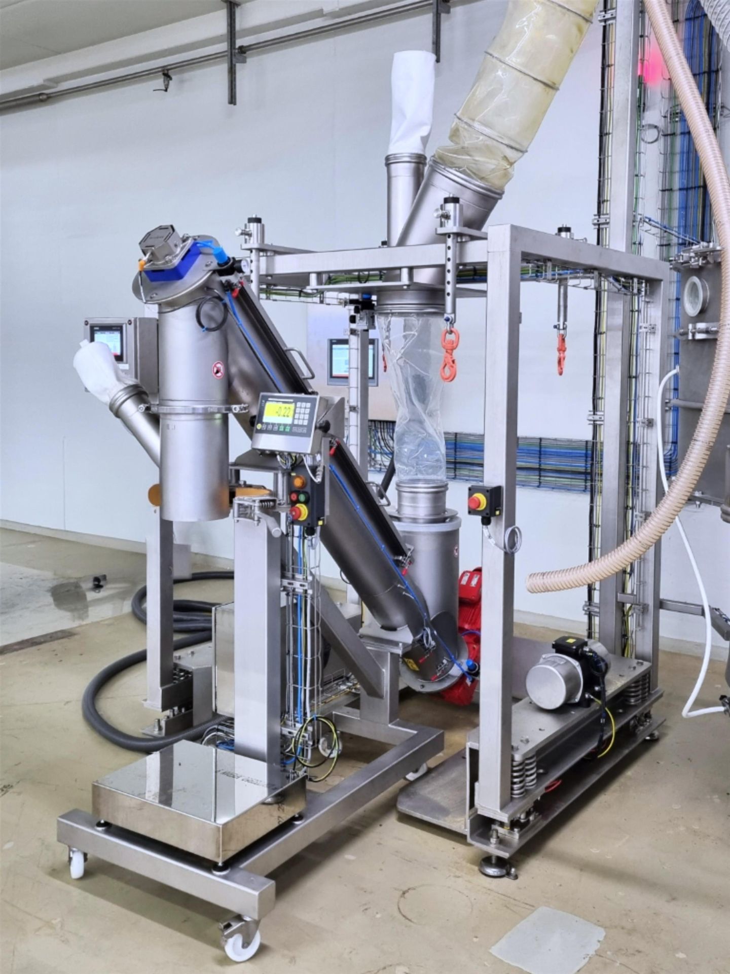 Product discharge into two BIG-BAG filling stations with weighing system