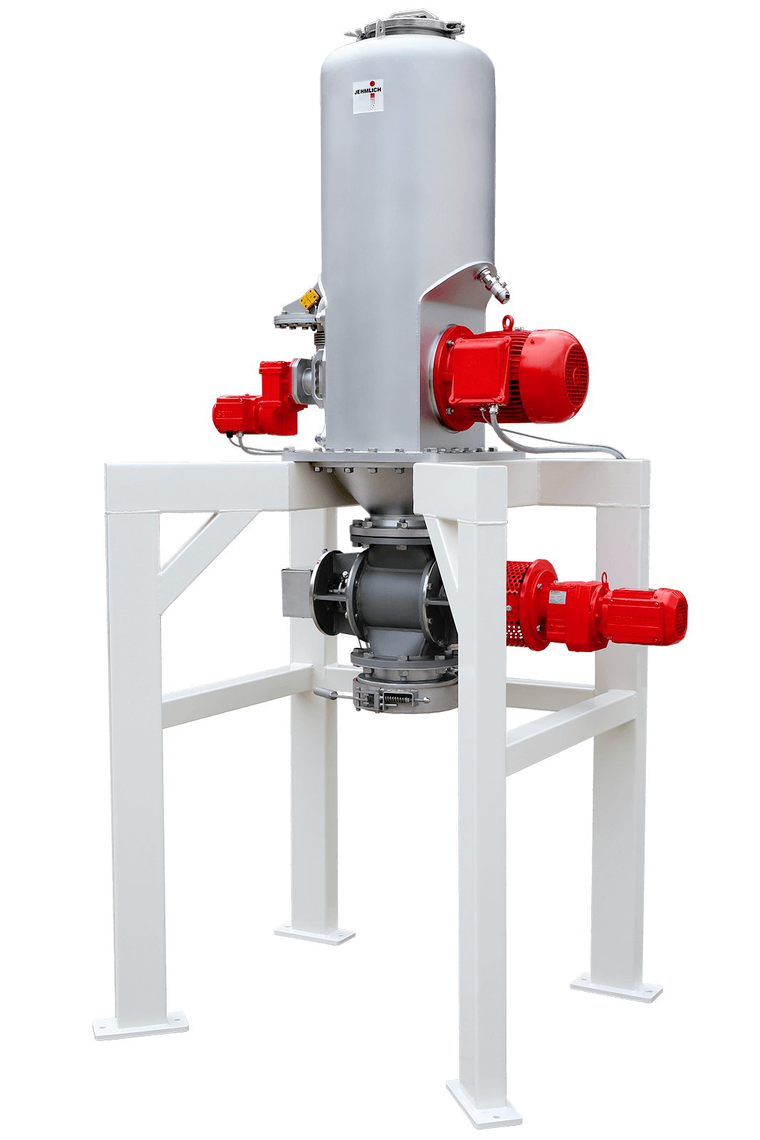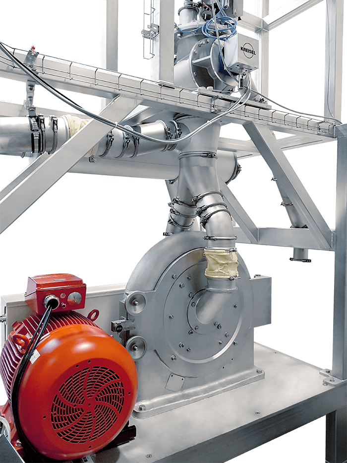 JEHMLICH COMPEX grinding plants combine a compact layout and pressure proof design for grinding potential dust explosive products. The entire grinding system is 10 bar pressure shock resistant. The product is fed and removed via pressure shock resistant and ignition proof rotary valves. The air recirculation makes filter systems for product separation obsolete.